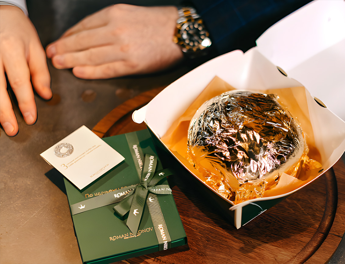 С 21 ноября по 31 декабря ювелирный дом Roman Nikonov и премиальные мясные рестораны Meat_Coin в Петербурге проведут уникальную коллаборацию. При заказе фирменного золотого бургера «MeatCoin 24 карата» блюдо преподнесут в фирменной коробке, с каталогом, сертификатом и эксклюзивным сувениром от ювелирного дома.